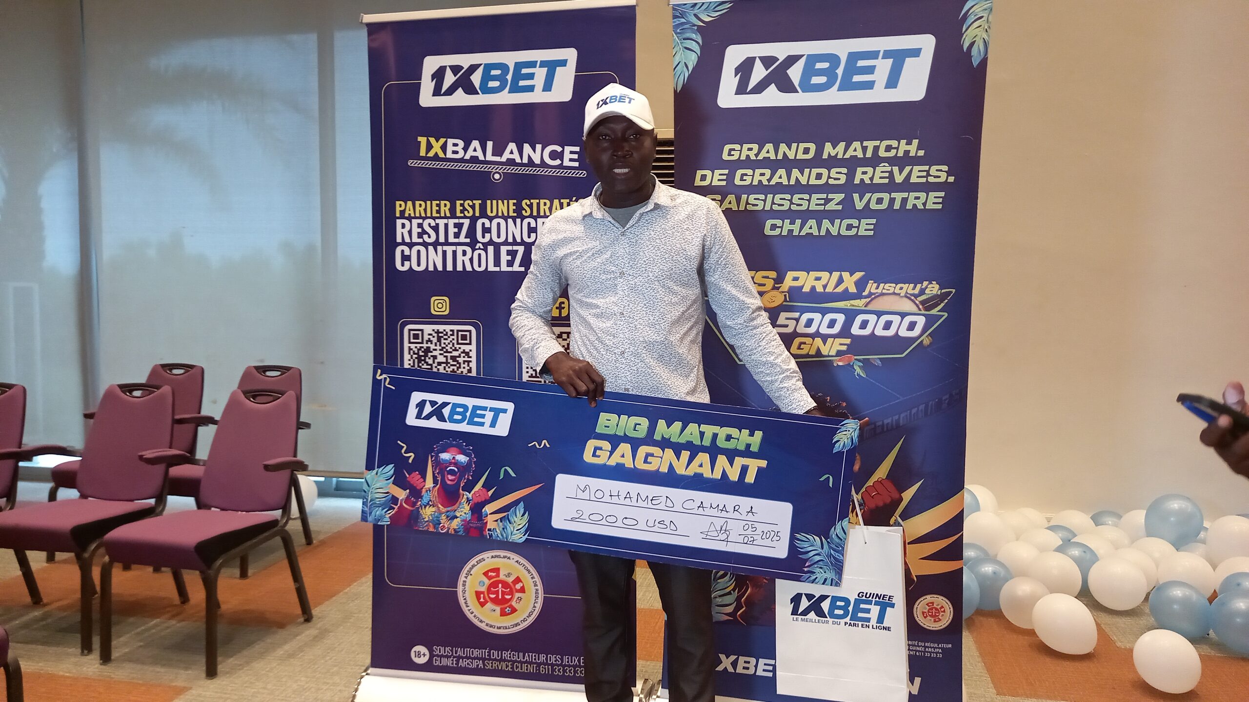 C’est avec honneur que je prends la parole ici au nom de toute l’équipe 1xbet Guinée à l’occasion de cette cérémonie de remise de prix, marquant une étape importante dans nos campagnes promotionnelles, et qui a suscité un fort engouement.Cette initiative n’était pas seulement un jeu ou une simple opération commerciale. Elle s’inscrit dans notre vision plus large : rapprocher la marque de ses clients, récompenser leur fidélité, et créer une dynamique d’interaction positive et durable.À travers ces campagnes, nous voulons aussi montrer que notre croissance va de paire avec le développement de notre environnement, dans une logique de partage et d’impact positif.Au fil des années, 1xBet s’est imposée comme le leader incontesté du secteur en République de Guinée, portée par une dynamique d’innovation constante, un engagement envers ses communautés, et un sens aigu de la responsabilité.Nous célébrons aujourd’hui un total de 29 gagnants issus de deux campagnes :9 gagnants en argent cash via la promotion BIG MATCH, dont :1 gagnant de 5.000 $ USD, 1 gagnant de 2.000 $ USD, 5 gagnants de 500 $ USD, 2 gagnants de 250 $ USD, 20 gagnants digitaux à travers le challenge 1XBALANCE sur Facebook, Instagram et X, récompensés par des objets connectés haut de gamme (JBL, INUI, AirPods).