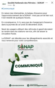 Pénurie de carburant en Guinée : Retard dans l’approvisionnement en essence – communiqué de la SONAP