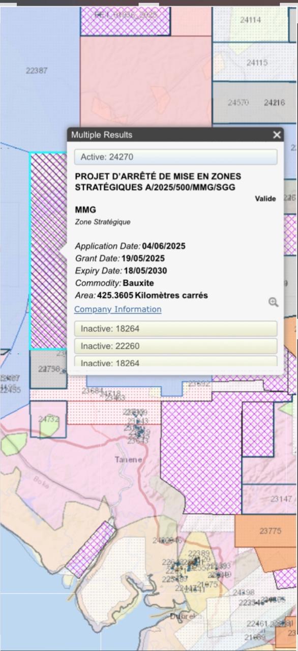 Ci-joint le cadastre minier guinéen.