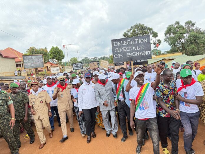 Bien avant cette cérémonie, Dr Labila Sagno, toujours accompagné de la délégation du Ministre Bogola Haba, parrain national du recensement de Yomou a poursuivi sa tournée dans plusieurs sous-préfectures de Yomou, notamment à Ouro, Banié et Bowé, où il a transmis le même message de reconnaissance envers le 𝐂𝐍𝐑𝐃 et de mobilisation citoyenne autour du recensement.