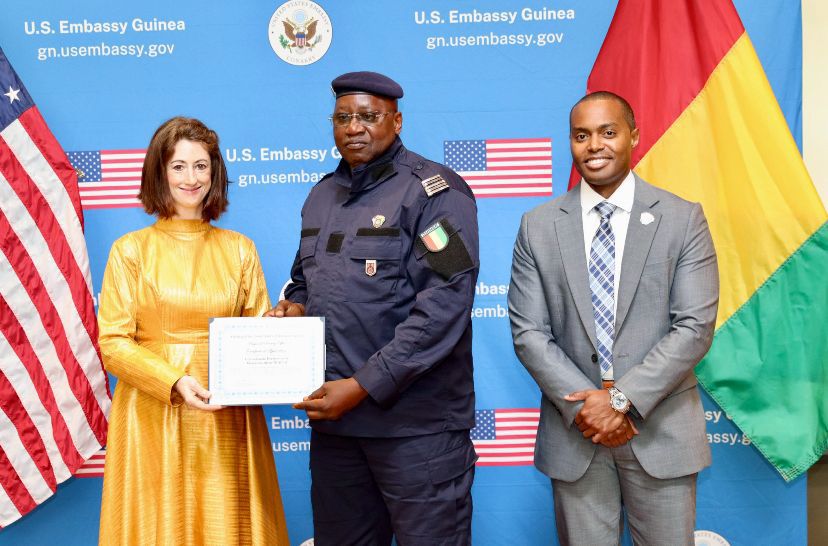 Le Colonel Mamadou Aliou Diallo, Chef du Groupement n°2 de CMIS de la Police nationale guinéenne, a reçu une distinction officielle de l’Ambassade des États-Unis d’Amérique en Guinée.