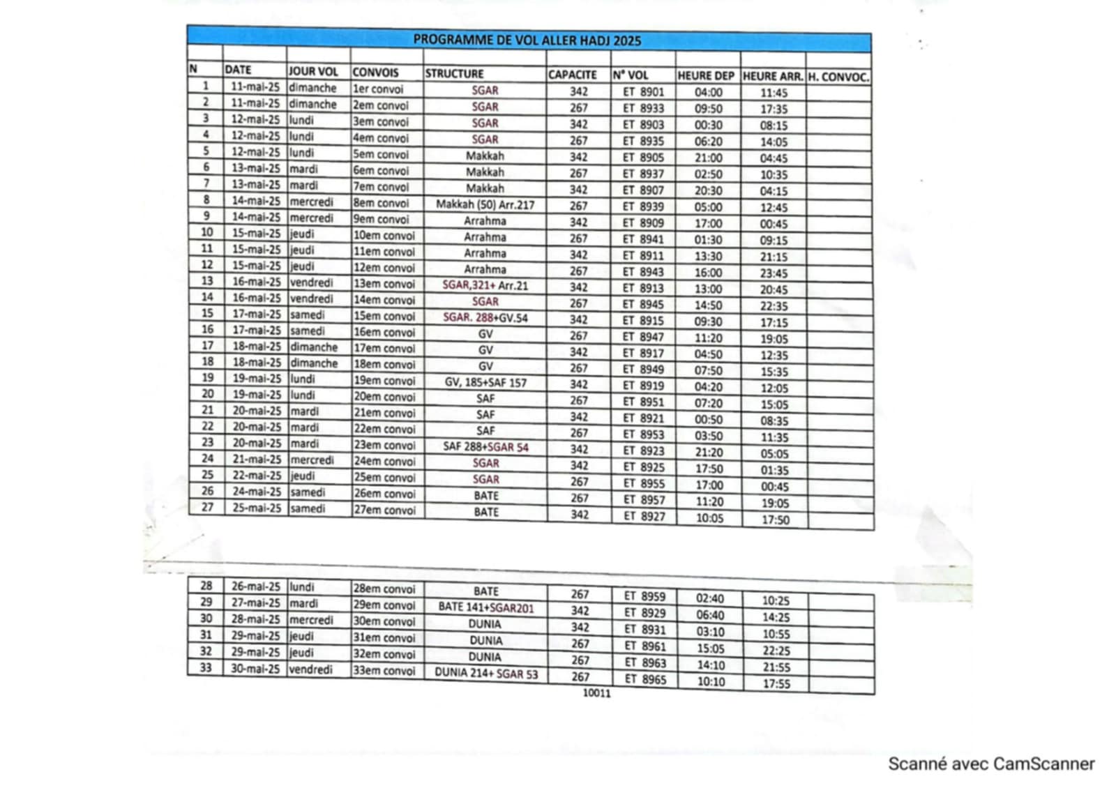 Le Secrétariat général des affaires religieuses a publié le calendrier des vols pour le Hajj 2025, marquant le début du pèlerinage. Le premier groupe de pèlerins quittera Conakry pour la Mecque le dimanche 11 mai 2025, donnant ainsi le coup d’envoi d’une saison de Hajj organisée et bien planifiée.