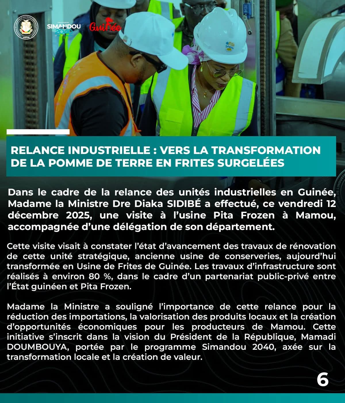 ÉCONOMIENEWS Industrie-PME: Revue des activités de la semaine Par Directeur de Publication - 15 décembre 2025 18253 Facebook Twitter Pinterest WhatsApp Ledenonciateur224.com vous propose l’essentiel de l’actualité au Ministère de l’Industrie et des PME du 08 au 14 décembre 2025. Cellule de la communication Partager : Cliquez pour partager sur Facebook(ouvre dans une nouvelle fenêtre) Facebook Cliquer pour partager sur X(ouvre dans une nouvelle fenêtre) X ARTICLES CONNEXESPLUS DE L'AUTEUR Guinée : l’heure des choix forts pour réussir la refondation Journée mondiale de l’Éducation : l’ONG OMEGA sonne l’alarme sur l’avenir scolaire des enfants guinéens Guinée : le DGA de l’Office Guinéen de Publicité suspendu après des propos jugés diffamatoires LES PLUS POPULAIRESNEWS1680FAITS-DIVERS753POLITIQUE524ÉCONOMIE266SPORT123INTERNATIONAL77