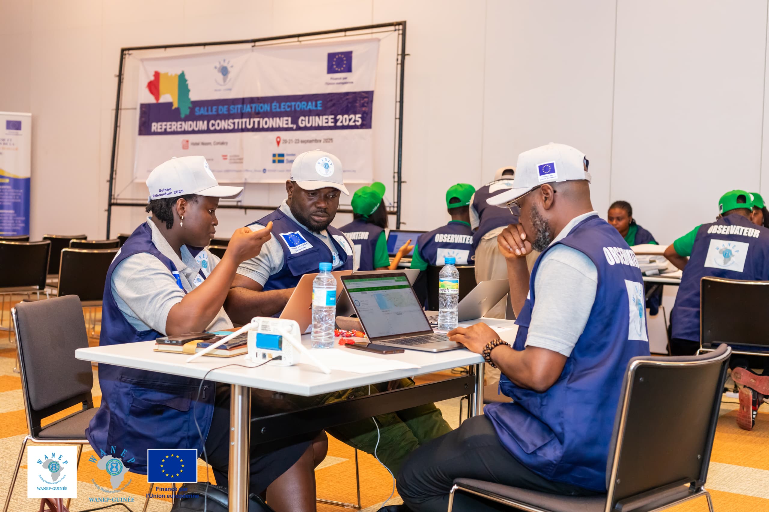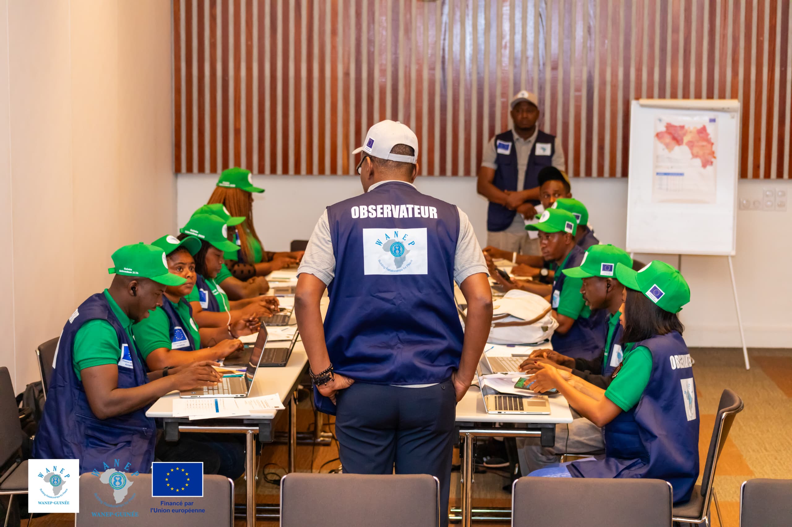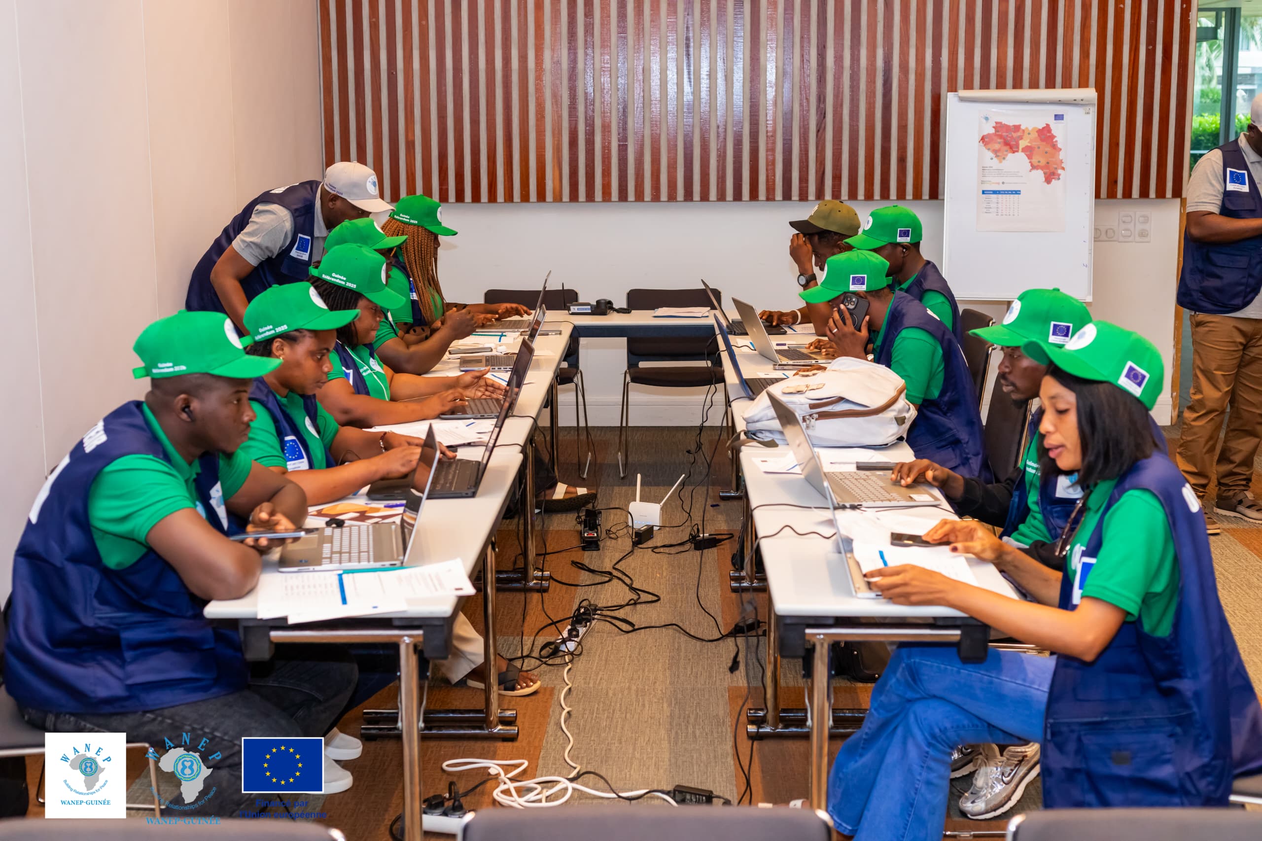 Dans le cadre de sa mission de prévention des conflits et de consolidation de la paix, WANEP-Guinée a déployé 100 observateurs, dont 20 moniteurs spécialisés, dans 700 bureaux de vote répartis dans les 8 régions administratives du pays. Ces bureaux ont été sélectionnés sur la base d’une cartographie des zones à risque de violence électorale. La Salle de Situation Électorale (SSE), installée à Conakry, centralise en temps réel les données issues du terrain afin d’alimenter une analyse dynamique et rigoureuse du processus.