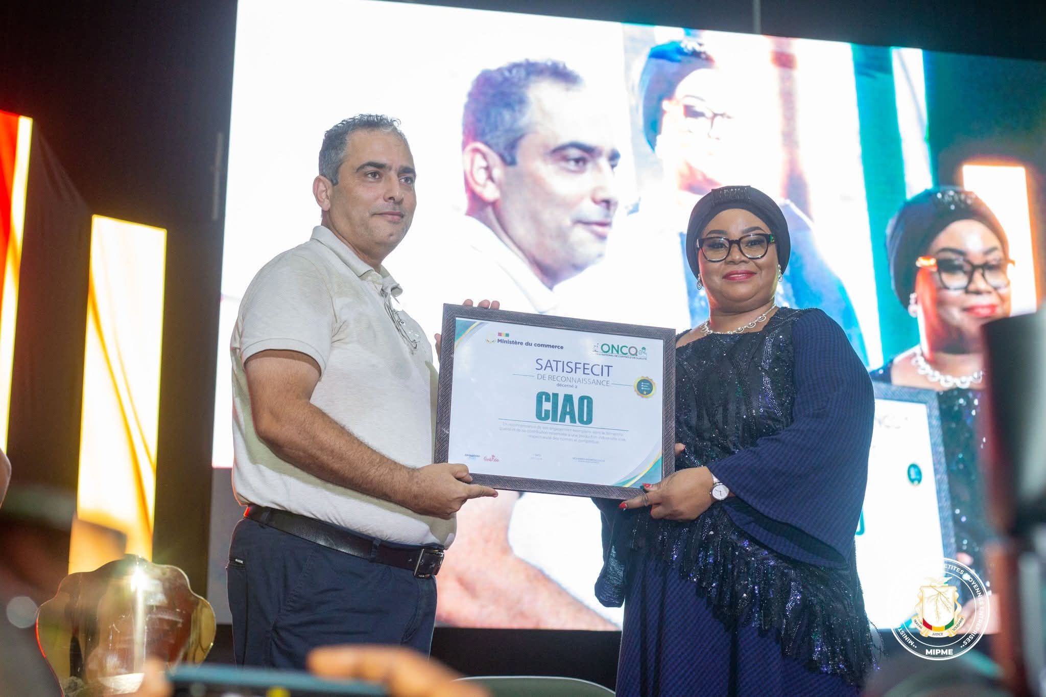 Au cours de cette rencontre de grande envergure, un moment fort a particulièrement retenu l’attention : le PDG du groupe CIAO a été honoré par un satisfecit remis en personne par la ministre du Commerce, récompensant son statut de meilleur importateur et investisseur dans les produits de bonne qualité en Guinée.