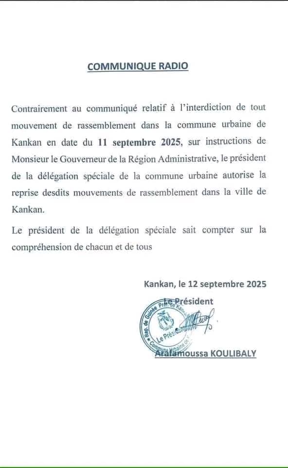 Dans un document parvenu à notre rédaction, il est indiqué que c’est le gouverneur de la région administrative de Kankan qui a donné son accord pour la reprise des activités.