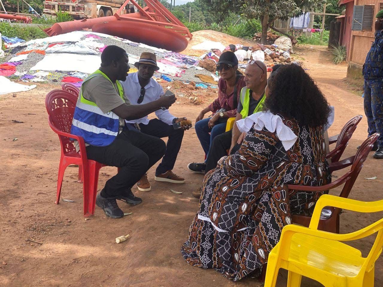Accompagné d’une délégation comprenant notamment Madame Djènè Keita, présidente de l’association Kania Diyé – maître d’ouvrage du projet – ainsi que Madame Mamaïssata Camara, Directrice préfectorale de la Culture, du Tourisme et de l’Artisanat, Monsieur le Préfet est venu évaluer l’état d’avancement de cet édifice en construction qui s’apprête à devenir un repère emblématique à l’entrée de la cité des agrumes.