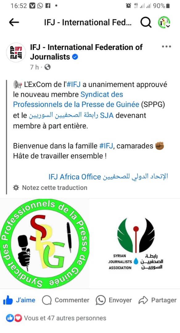 Le Bureau National du SPPG a le plaisir de vous informer que notre grande famille syndicale vient de franchir une étape majeure dans son engagement pour la défense des professionnels de l’information reconnu au-delà de nos frontières. En effet, le SPPG est désormais membre affilié à part entière de la fédération internationale des journalistes (FIJ).