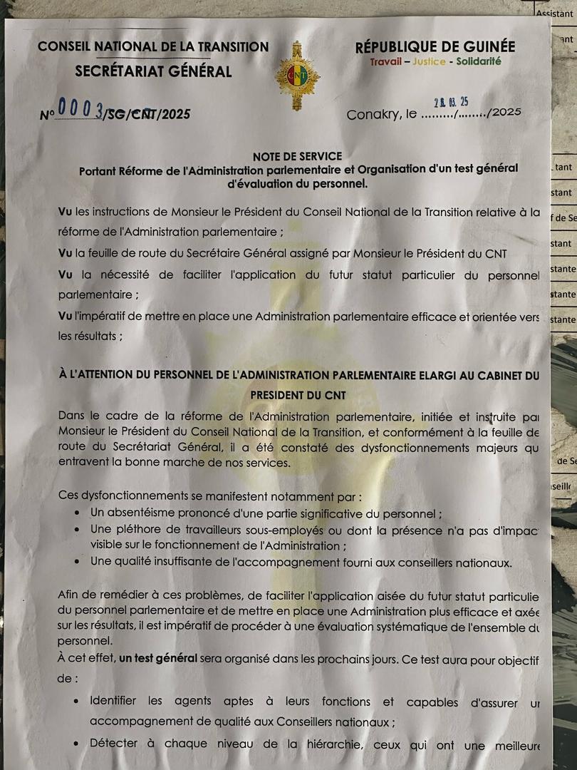 Les travailleurs du Conseil National de la Transition (CNT) ont annoncé une manifestation de protestation ce mercredi, en réponse à une décision prise par les autorités concernant la réforme de l’Administration parlementaire. Cette initiative suscite une vive opposition parmi les membres du CNT, qui dénoncent des dysfonctionnements majeurs nuisant à l’efficacité de leurs services. Selon la note officielle, ces problèmes incluent un absentéisme généralisé parmi une partie significative du personnel, ainsi qu’une pléthore de travailleurs sous-employés dont la présence n’aurait que peu d’impact sur le bon fonctionnement de l’institution.