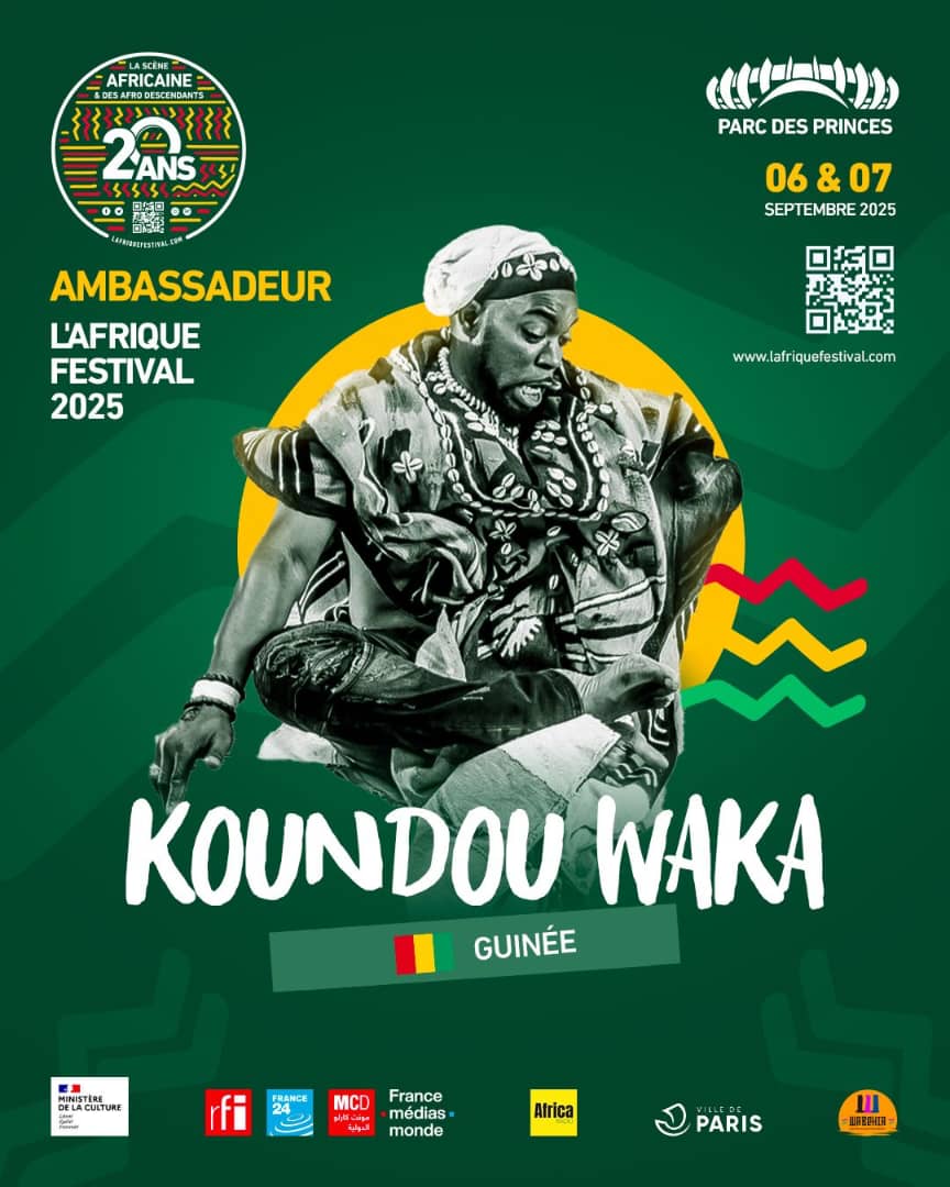 La Guinée rayonne une fois de plus sur la scène culturelle internationale. Koundouwaka, vient d’être désigné ambassadeur de l’Afrique Festival, un rendez-vous culturel majeur qui se tiendra les 6 et 7 septembre 2025 au Parc des Princes, à Paris.
