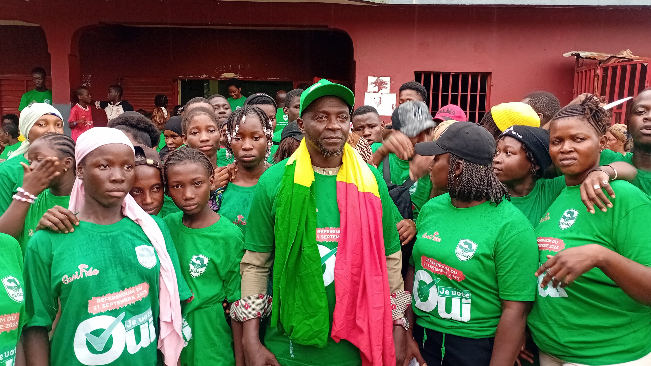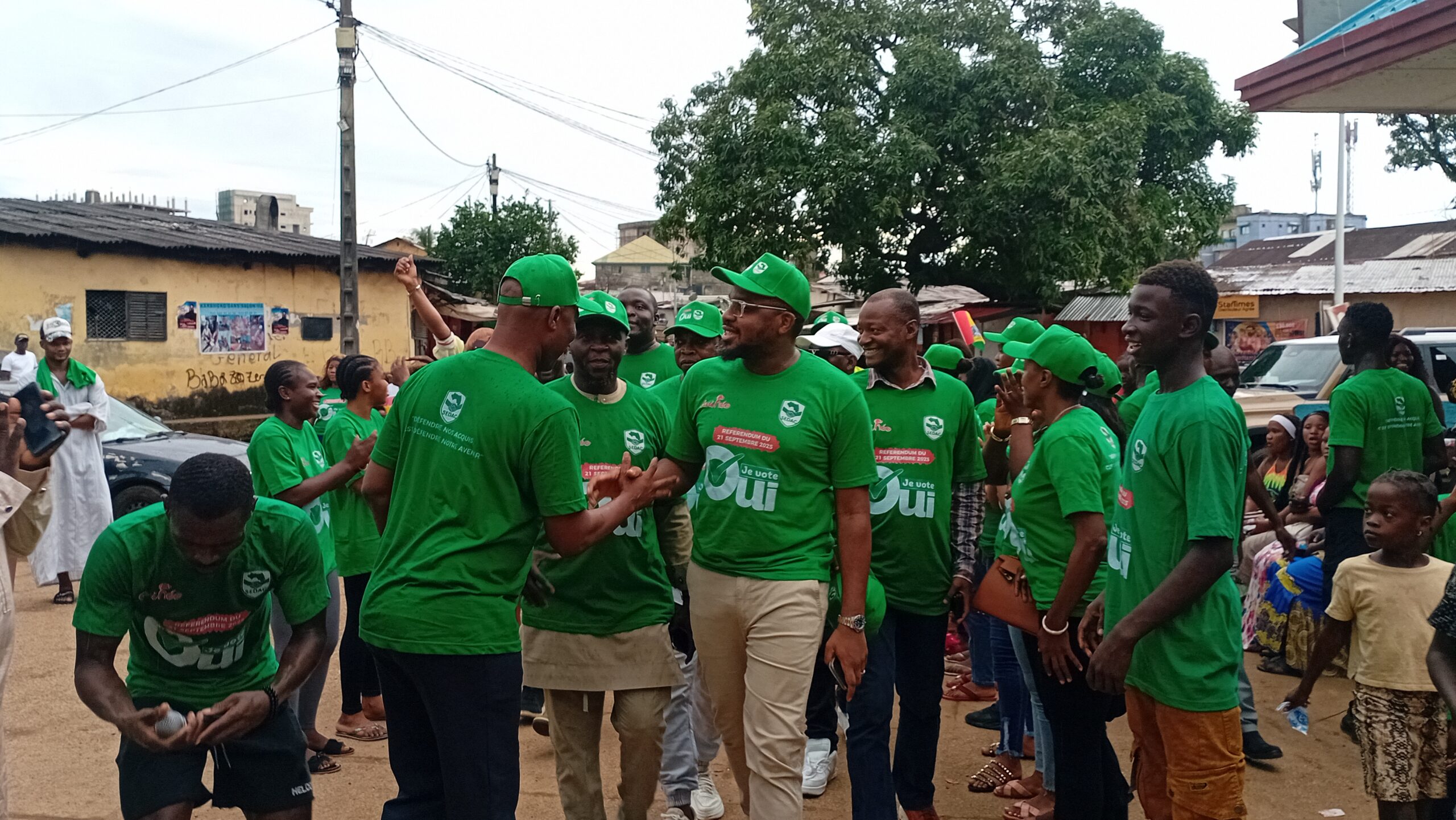 << Les citoyens de Dixinn je suis très content de vous. Vous avez montré votre force, votre détermination et votre engagement. J’en suis convaincu que le jour du scrutin référendaire vous allez votez OUI !!! Mais bien avant ce jour, je vous invite d’être fortement mobilisés pour le meeting qu’on va organiser le 17 septembre à l’esplanade du stade du 28 septembre. Les 22 quartiers de Dixinn, voire même de Conakry, puissent se rallier le stade du 28 septembre. Les « verts vont s’exprimer ». On va montrer à la Guinée, de quoi nous sommes capables, que les fils de Dixinn sont mobilisés pour une fois pour la cause commune, qui est la cause qui sert mieux la jeunesse de Dixinn.>>,a-t-il annoncé devant une foule compacte.