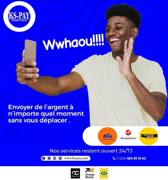 KS-PAY GUINEE est une société leader du transfert national et international. KS-PAY est un porte-monnaie électronique qui permet d’effectuer des paiements et toutes les transactions financières en République de Guinée sans aucun déplacement. Acteur incontournable du secteur à travers son application (disponible sur playstore), elle offre un moyen simple, rapide et efficace pour effectuer toutes vos transactions en temps réel, à votre convenance et en toute sécurité.