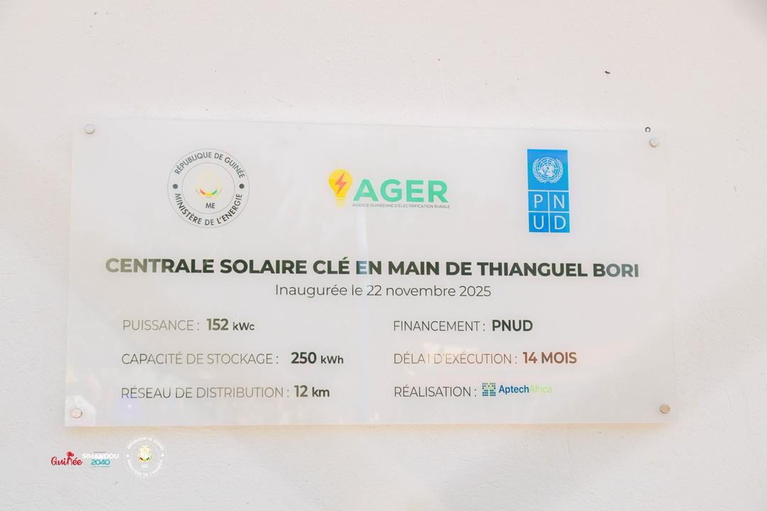 Le Gouvernement guinéen poursuit son ambition d’étendre l’accès à l’énergie partout dans le pays. Ce samedi 22 novembre 2025, le Ministère de l’Énergie, à travers l’Agence Guinéenne d’Électrification Rurale (AGER), a procédé à l’inauguration officielle de la centrale solaire de Thianguel Bori, sous la présidence d’honneur de Monsieur le Ministre de l’Énergie, Namory Camara, entouré d’une importante délégation du Département.