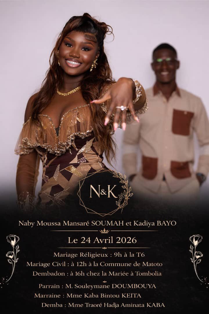 Le 24 avril prochain s’annoncera comme une date mémorable, empreinte d’émotion et de joie, qui restera gravée dans les cœurs. En ce jour exceptionnel, le journaliste Naby Moussa Mansaré franchira une étape décisive de sa vie en s’engageant sur le chemin du mariage.